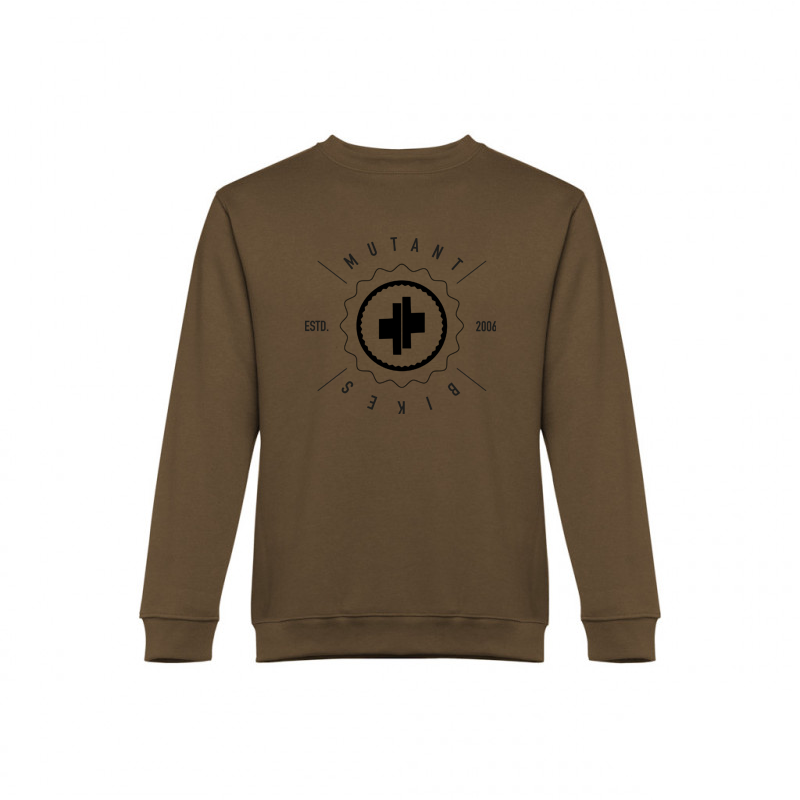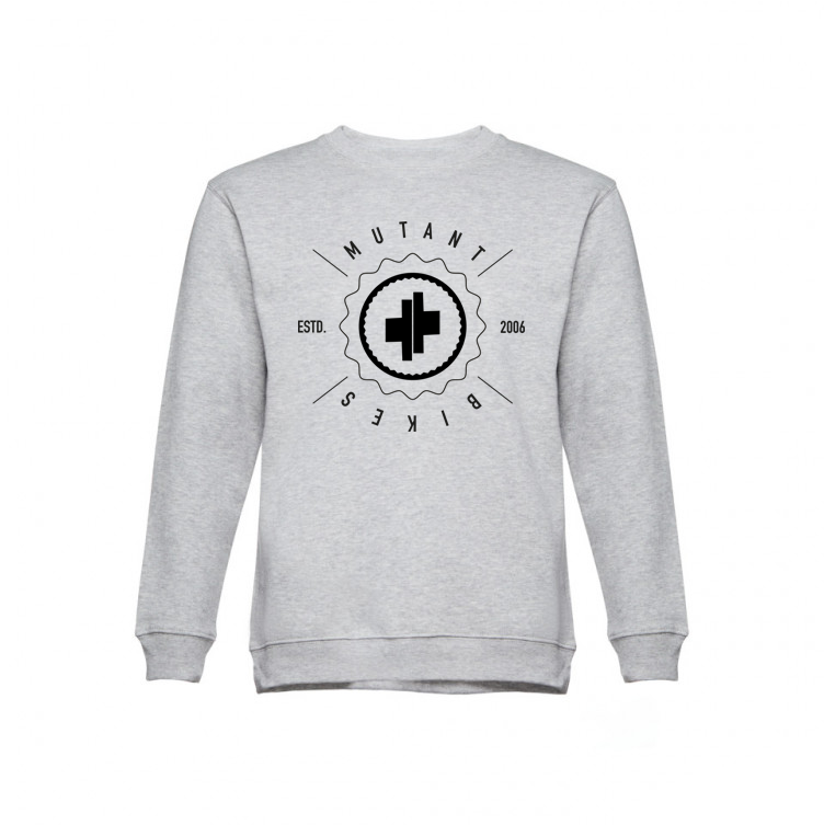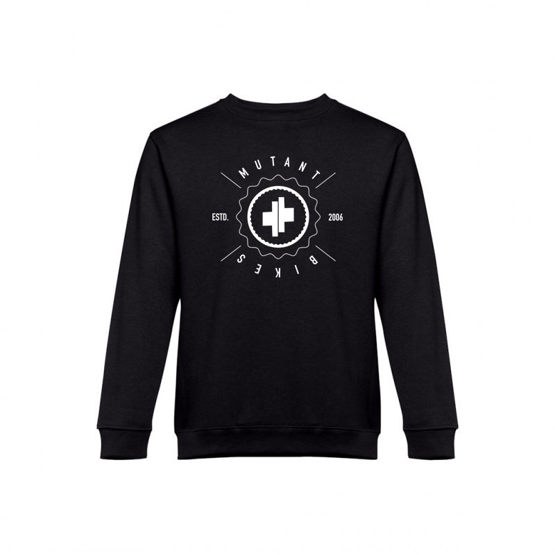 Features a warm shirt with 50% polyester and 50% cotton construction. MUTANT BIKES logo is printed across the chest.